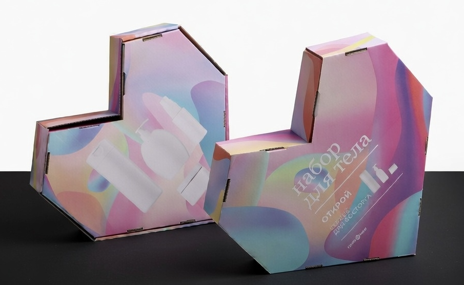 Примечательно, что выигрыш здесь дала не «сложность», а порядок. Стандартная форма обеспечивает стабильную выкладку и одинаковый вид в карточке товара, а сокращение форм под УФ-лак экономит бюджет на подготовке производства — без потери выразительности и вариативности дизайна.