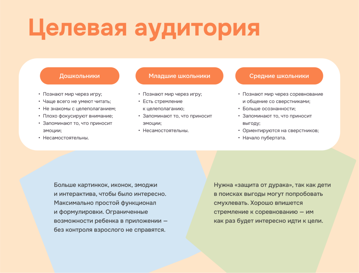 Помимо дошкольников выделили группу «младшие школьники» (7–11 лет) и «средние школьники» (12–13 лет), также выделили боли и предложили пути решения:
