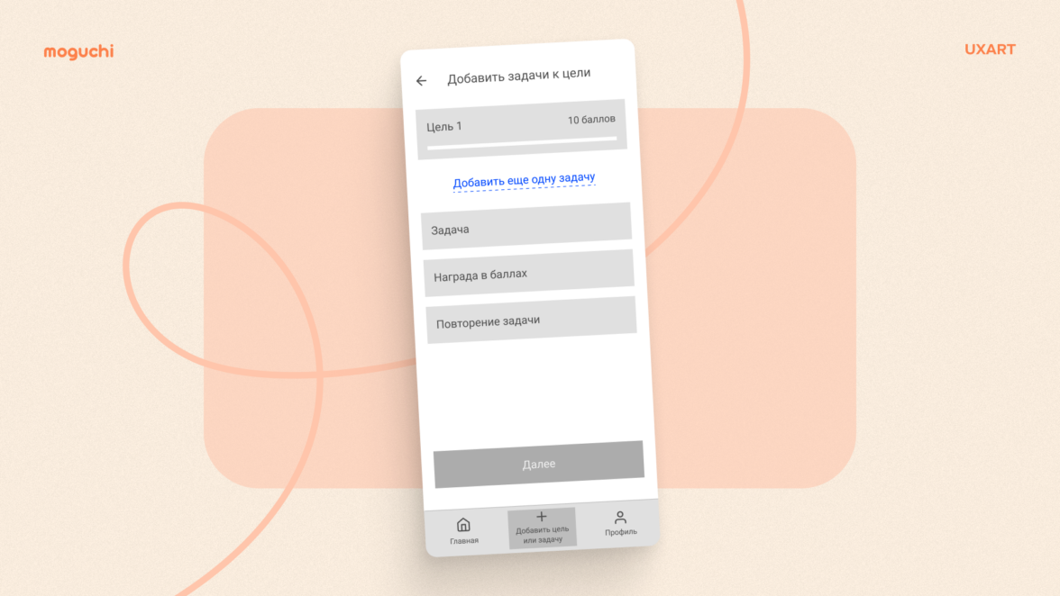 4. Добавление цели — название цели, визуализация, количество баллов за выполнение, а также возможность ограничения по времени.