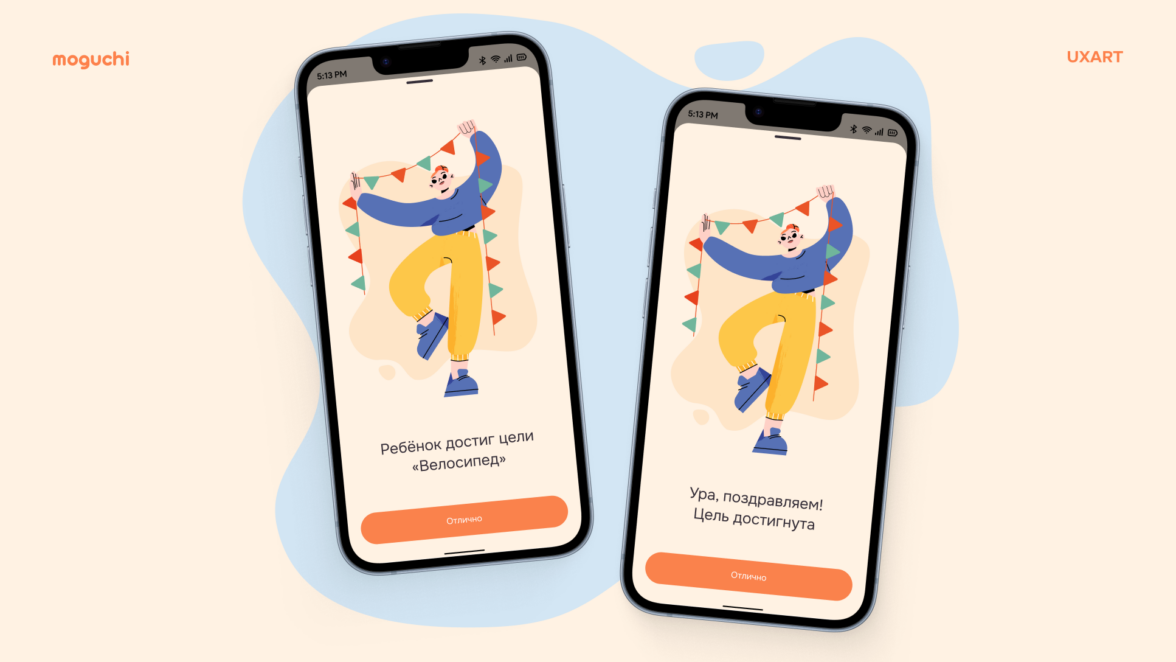 Далее пошла самая интересная работа — совместить простой и понятный «детский» визуал с удобным функционалом для родителей. Основной функционал приложения уже был описан выше, но во время дизайна мы изменили некоторые части Могучи, о которых расскажем ниже.