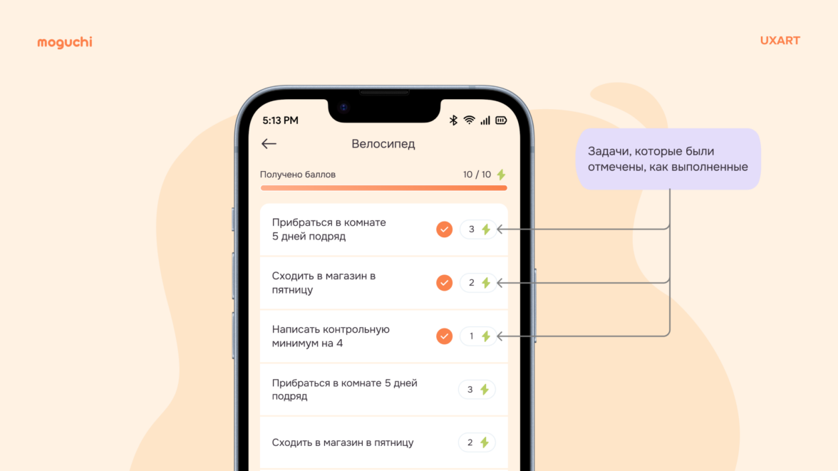 8. Возможности ребенка — отмечать выполнение задачи и следить за общим прогрессом.