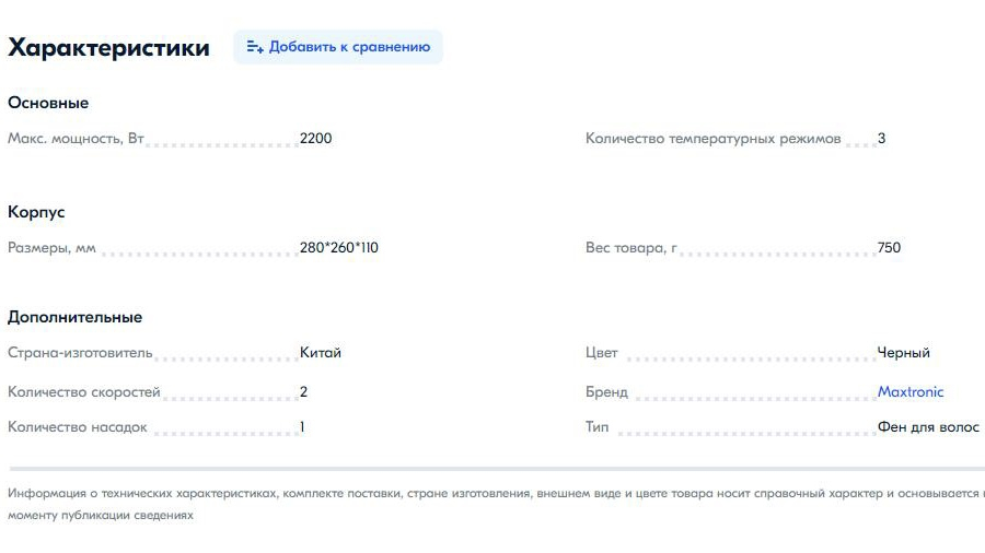 Заполнение характеристик. Советуем по возможности заполнять все характеристики. Это дополнительная информация, которая влияет на решение о покупке и может выделить вас на фоне конкурентов. Например, пользователю, ищущему телевизор, для принятия решения важно знать не только размер товара, но и его вес, размер без подставки, размер настенного крепления и тд.