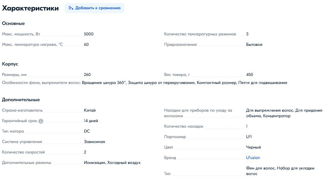 Также характеристики влияют на позицию товара в рейтинге. Чем больше характеристик вы заполните, тем больше поискового трафика получит ваша карточка.