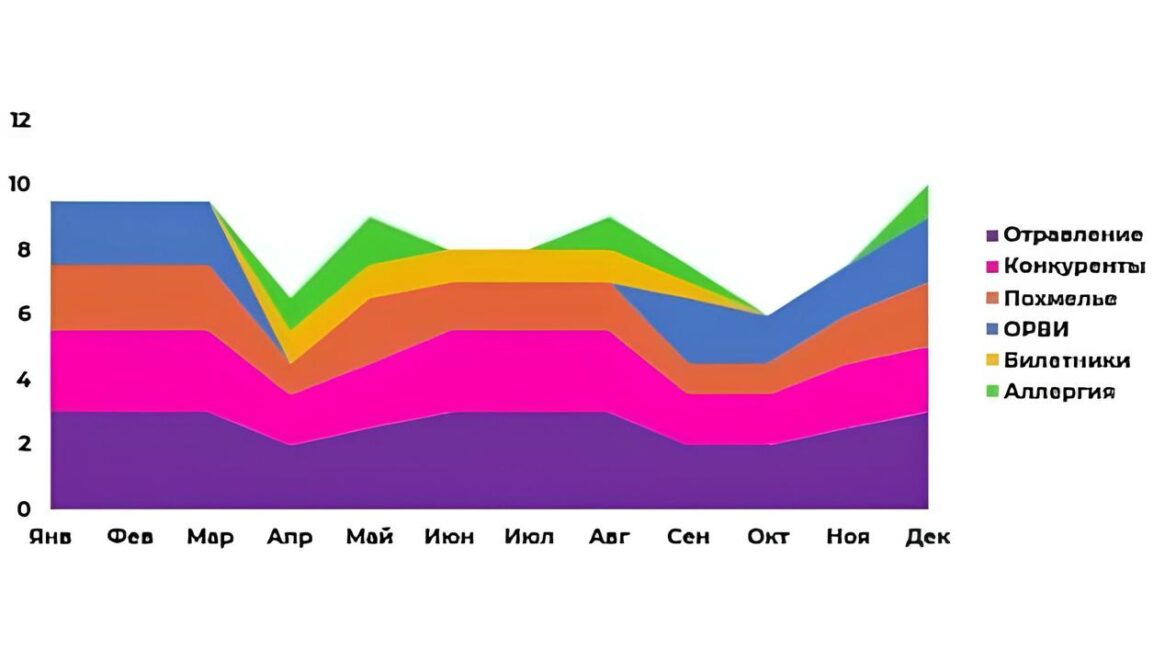 Похмелье — пиковая активность в новогодние праздники, период отпусков;
