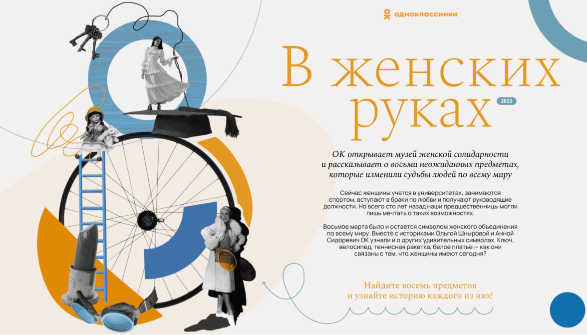 Многие компании запускают к 8 марта социальные инициативы. Например, соцсеть «Одноклассники» в 2022 году представила образовательный онлайн-проект «Музей женской солидарности», рассказывающий о предметах, изменивших жизнь женщин.