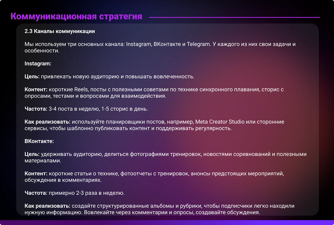 SMM-стратегия. Разработали план публикаций, контент-стратегию и форматы, которые максимально вовлекают аудиторию.
