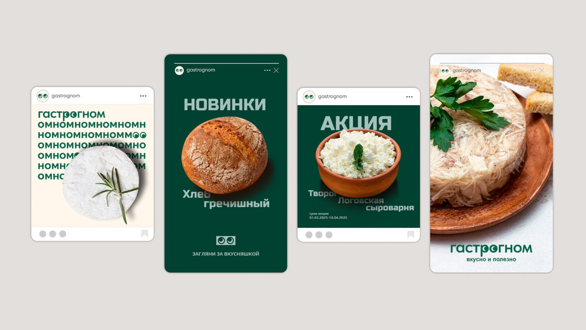 У нас получился бренд с характером. «Гастрогном» не пытается выделиться экстравагантностью или необычным дизайном. Ты его просто запоминаешь. Из-за взгляда в логотипе, высокого качества, натуральности. Из-за тона, в котором нет желания понравиться — только быть понятным и нужным.