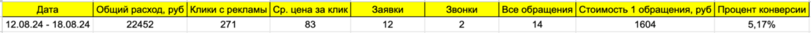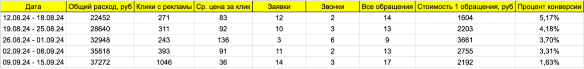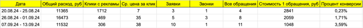 В итоге запустили кампанию на стратегии «Оптимизация кликов». За время тестирования кампании она принесла 4 обращения по 2000 рублей.