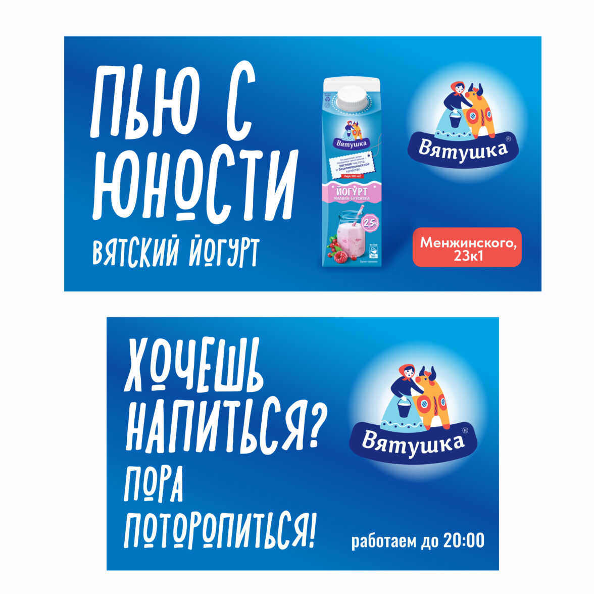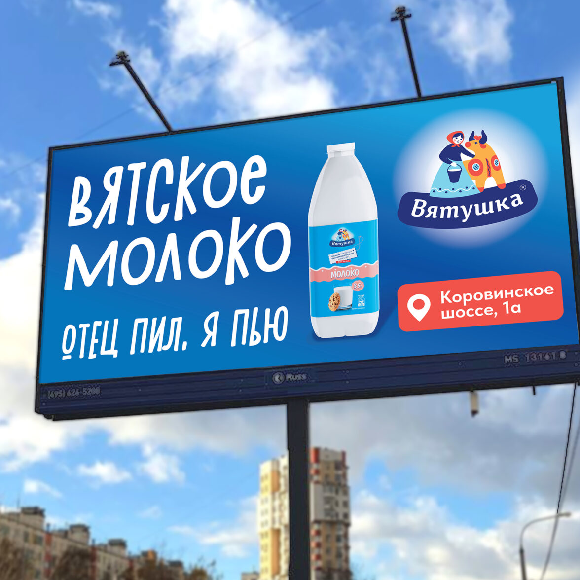 «Хотим открыть торговую точку своей сети в Москве и нам нужна реклама» — такая задача поступила от нашего заказчика, Кировского молокозавода «Вятушка».