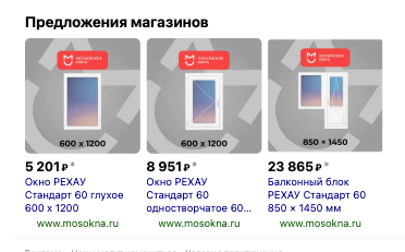 До января-февраля кампания в товарной галерее работала по фиду со стандартным набором элементов и параметров: одно изображение, короткое описание, размер, цена.