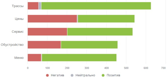Для оптимизации обработки большого потока отзывов мы ввели маркеры отзывов. Маркеры отражают тематику отзывов: сервис, цены, меню, безопасность, трассы, ски-пассы, бассейны и SPA, горки в аквапарке и т.п. Система маркировки позволяет своевременно распределять отзывы по зонам ответственности специалистов ГТЦ «Газпром». Кроме того, маркеры указывают на слабые и сильные стороны каждого из объектов за любой период наблюдения.