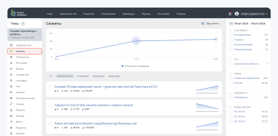 Следите за развитием сюжетов, пока тема мониторинга есть в вашем аккаунте Brand Analytics.