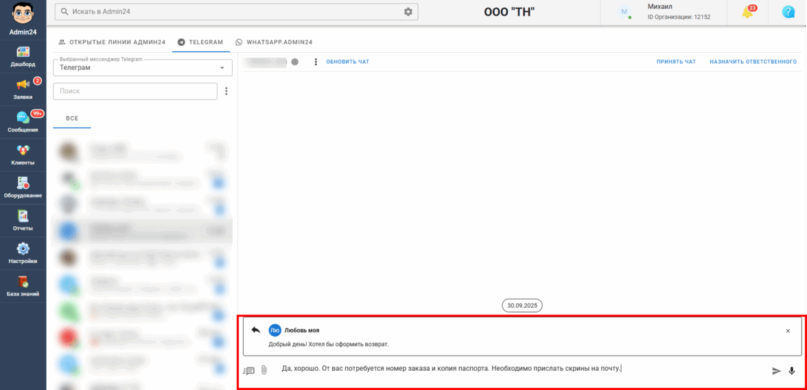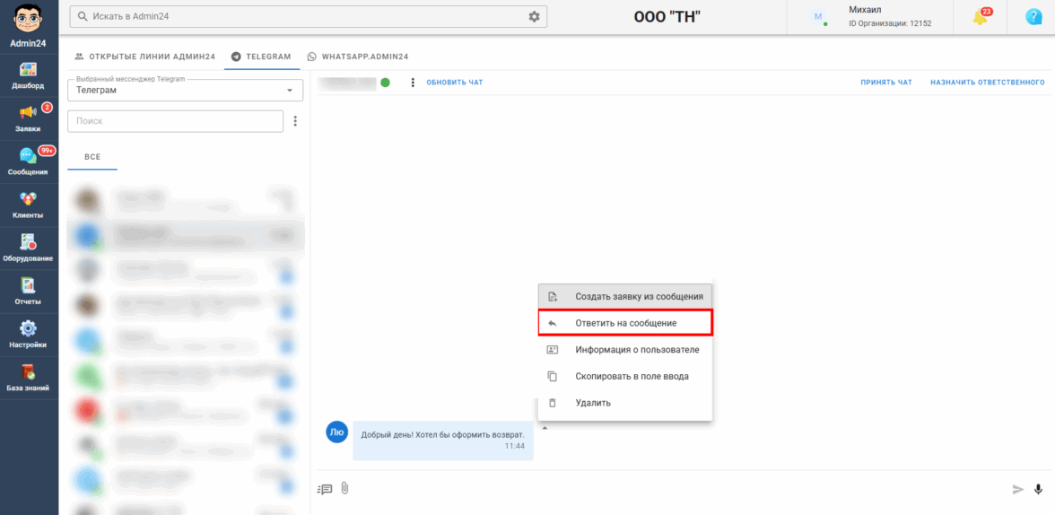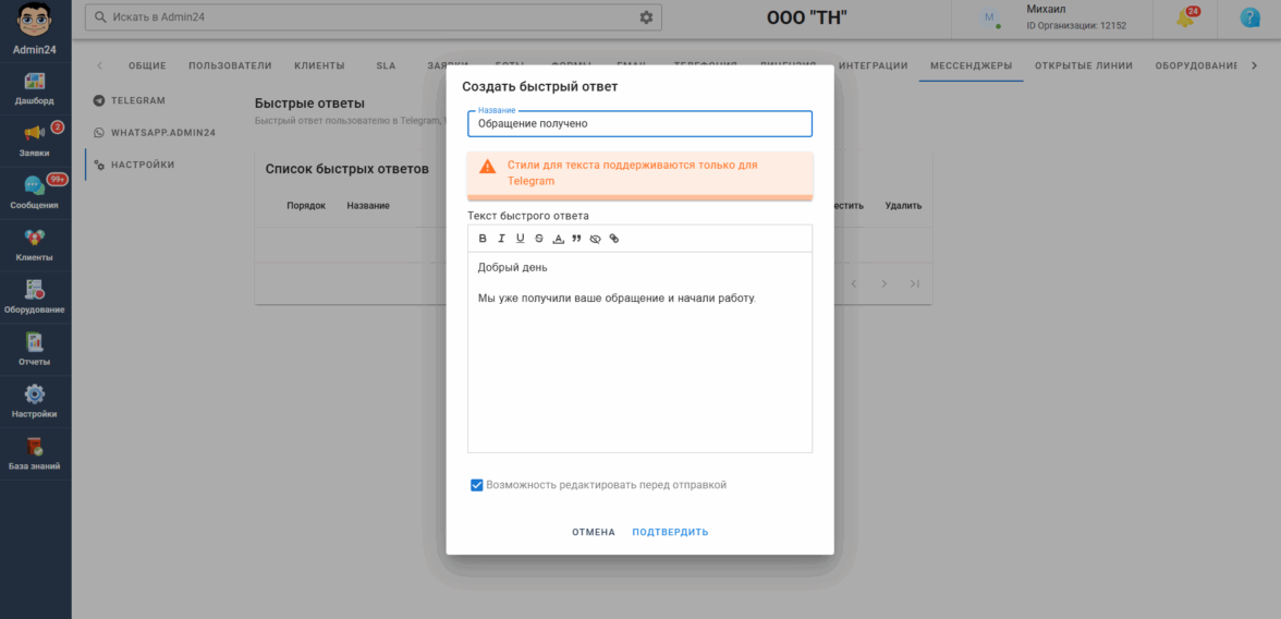 Ответы в Telegram, быстрые ответы в мессенджерах и другие новые функции Admin24