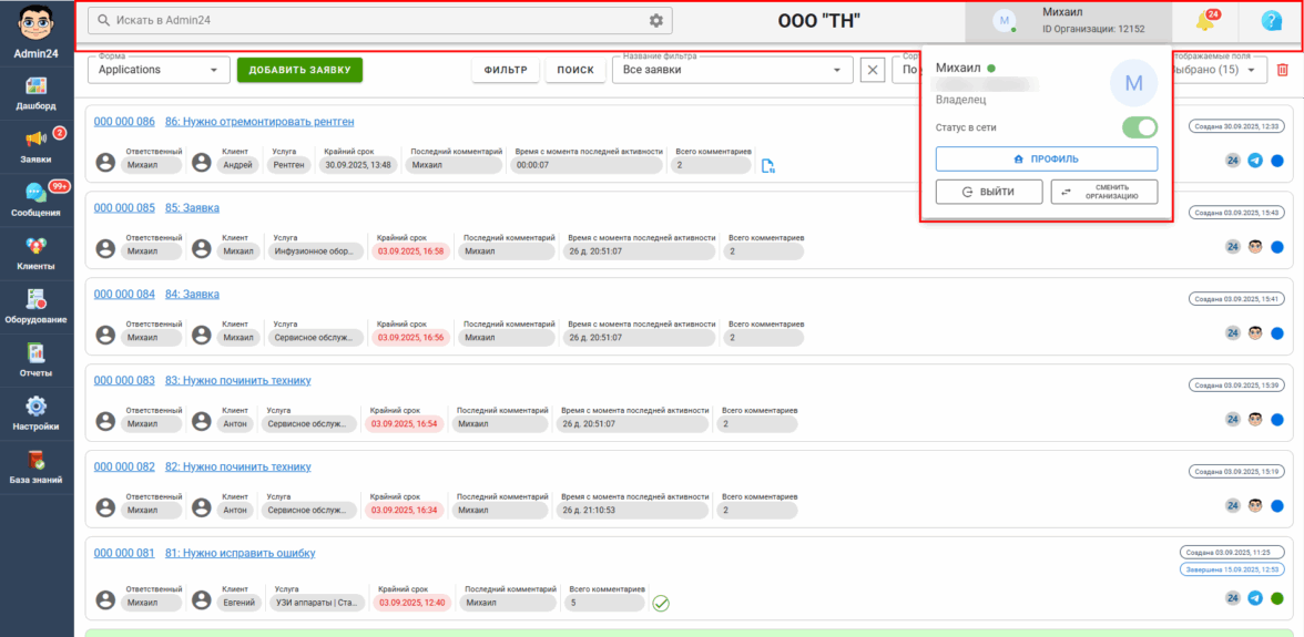 25 сентября вышло очередное обновление Admin24, в котором появились новые функции и улучшения для удобной работы с клиентами и командой. Теперь в чате Telegram можно отвечать на сообщения прямо в переписке, стало проще управлять регистрацией сотрудников и клиентов, а при звонке система показывает карточку контакта с ключевой информацией. Также появились быстрые ответы в мессенджерах, индикация неотправленных комментариев, синхронизация дополнительных контактов с Битрикс24 и ряд других доработок.