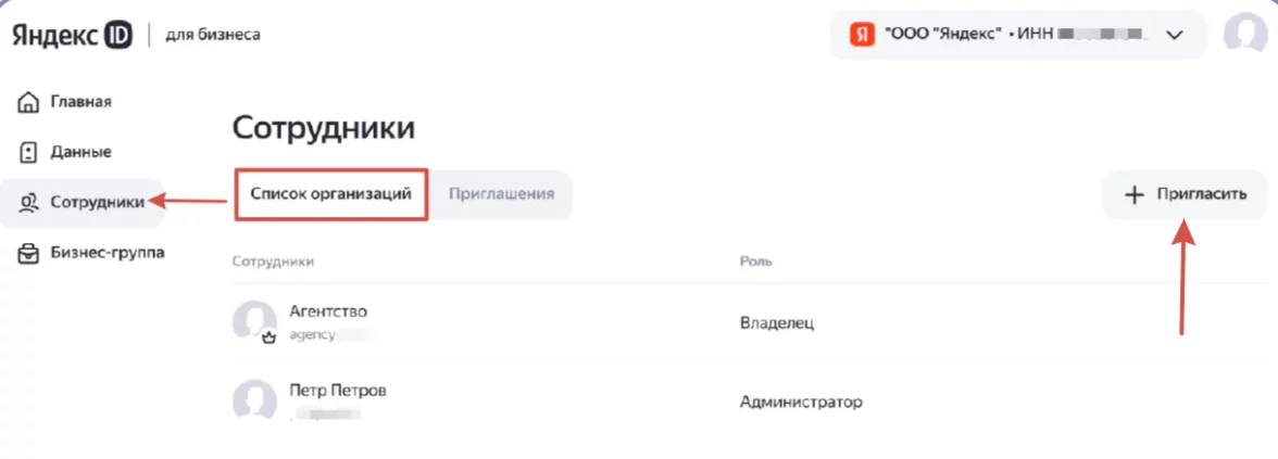 Шаг 3. Переходим в блок «Сотрудники» и оформляем приглашение по кнопке «+ Пригласить».