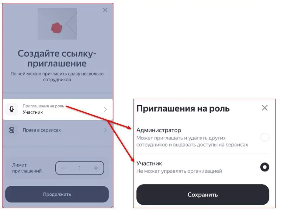 Как выбрать роль приглашаемого пользователя