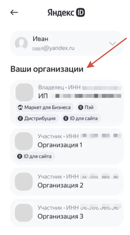 Если доступ есть к нескольким организациям, просто выбираем нужную.