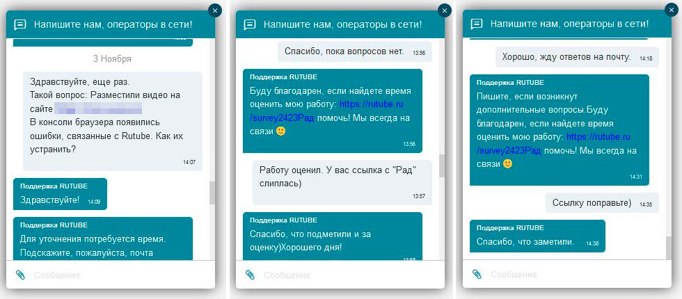 Поэтому, убедившись в работоспособности Rutube в целом, обратились с этими вопросами в поддержку.