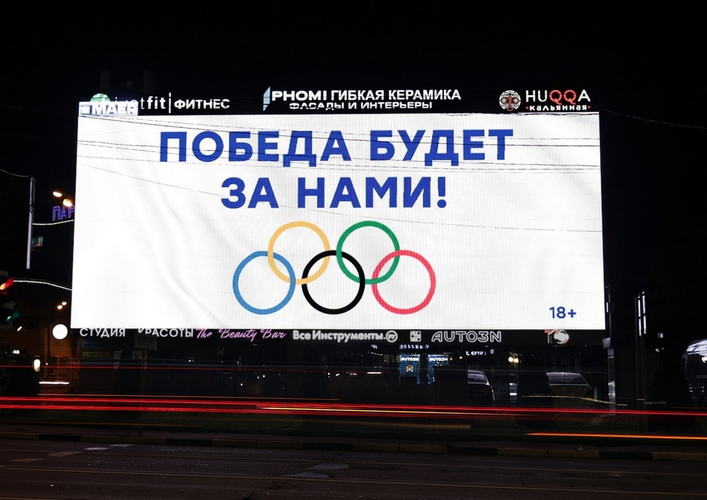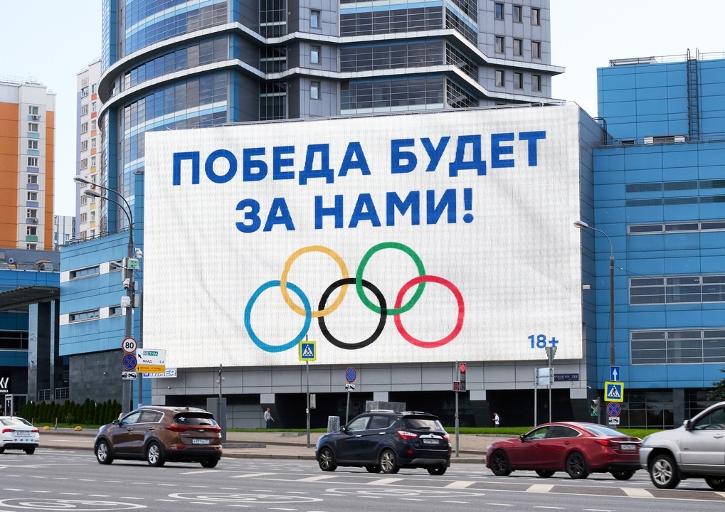 На крупнейших медиафасадах и цифровых экранах по всей стране в начале августа стартовала масштабная информационная кампания: на фоне перевернутого флага Олимпийского движения располагалась надпись «Победа будет за нами». Фотографии с этим креативом быстро распространились в СМИ и социальных сетях, а в поддержку российских спортсменов, которых в этом году до участия в Играх не допустили, высказались их коллеги — Олимпийские чемпионы прошлых лет.