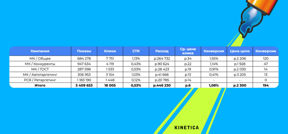 3. Прорыв в Поиск: добившись успеха с МК, мы убедили клиента дать нам «зеленый свет» на запуск поисковых кампаний — самого целевого канала для B2B.