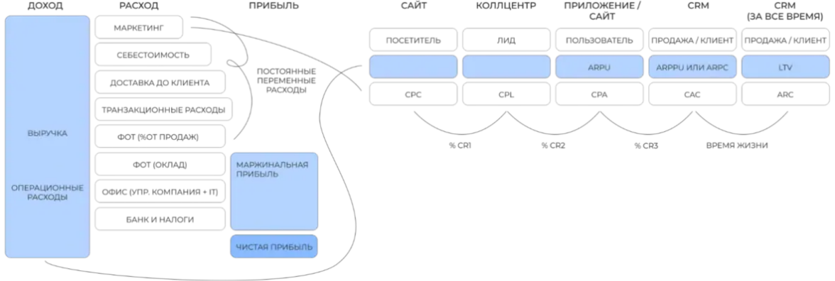 Системный менеджмент строится на финансовых целях проекта, распространяя их на каналы трафика и учитывая в KPI тех, кто ими управляет.