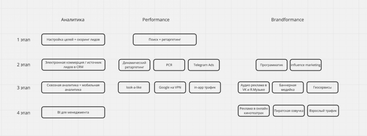 Когда количество performance-каналов растёт, на первый план выходит brandformance, но и количество метрик увеличивается: