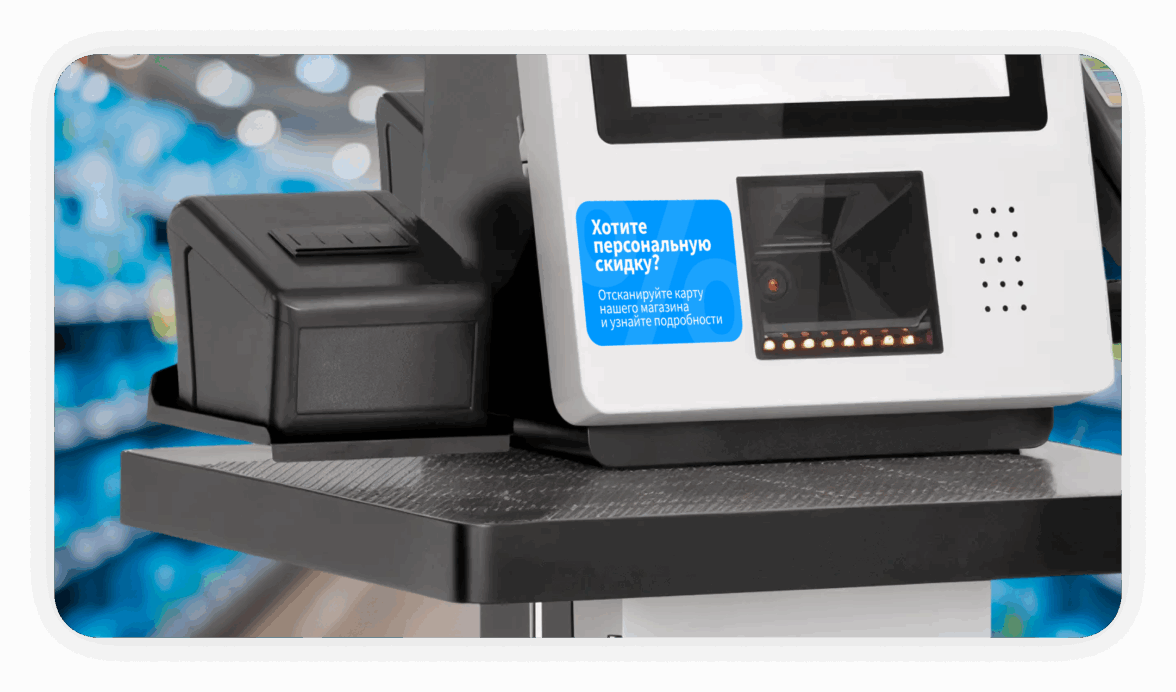 Стикеры и наклейки в зоне касс самообслуживания (КСО). Зона касс самообслуживания — идеальное место для напоминания о выгоде по карте. Наклейка на экране или панели может сообщать: «По карте у вас есть персональные скидки — примените её и узнайте подробности».