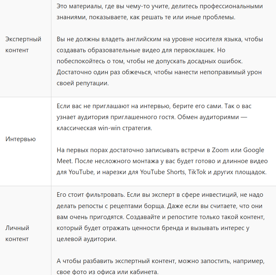 Лучше вести одну социальную сеть, которая по формату больше всего подойдет для вашего контента, а для других соцсетей — только адаптировать и перупаковывать контент из нее. К примеру, если вы развиваете свой бренд через интервью с экспертами, приоритетной площадкой для вас будет YouTube (или VK Видео). Но никто не запрещает вам при этом размещать расшифровки бесед на личном сайте, а краткие выдержки — в своем сообществе VK. Так охват целевой аудитории будет шире, потому что вы ищете ее на разных площадках.