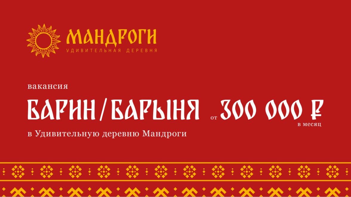 Удивительная деревня Мандроги. «Вакансия барин/барыня в “Удивительную деревню Мандроги” с зарплатой от 300 000 рублей в месяц»