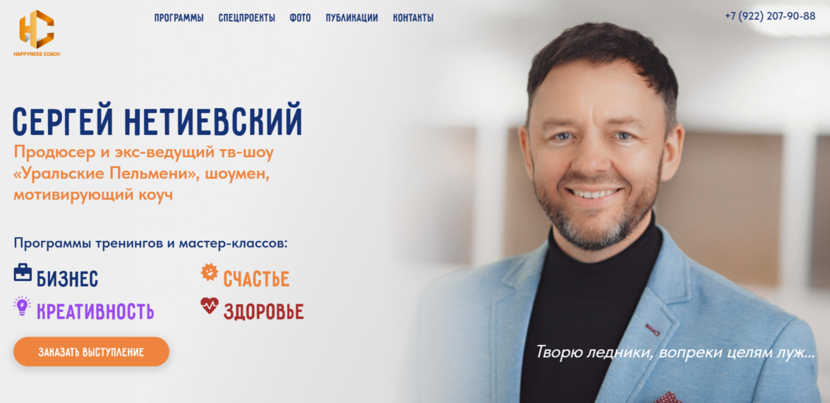 Мы сделали сайт, в котором каждый элемент служит одной цели — раскрыть душу артиста. Без кричащих заголовков, без лишнего блеска. Только тёплое визуальное пространство, внимание к деталям и искренность. Здесь не продают концерты — здесь рассказывают историю человека, которому верят со сцены. Сайт не просто представляет — он оставляет послевкусие уважения.