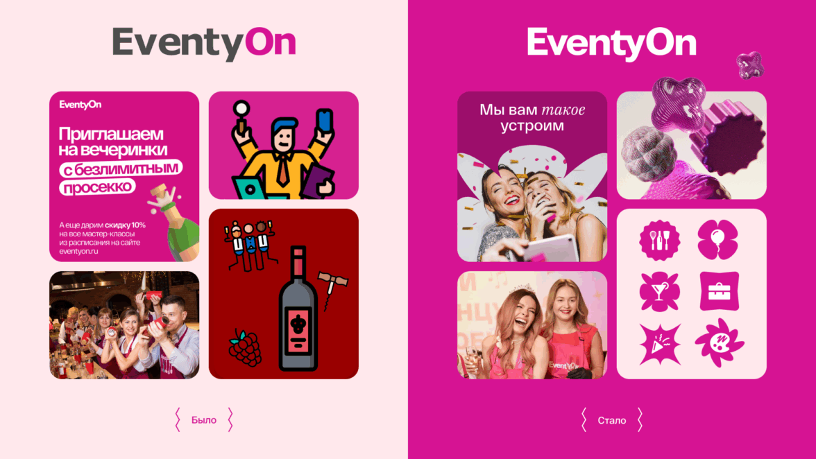 По итогам проекта EventyOn получил уникальный образ и самое главное – обещание бренда, которое одновременно бросает вызов конкурентам и перехватывает внимание аудитории. Ребрендинг помогает компании закрепиться в премиальном сегменте и расширить базу посетителей.