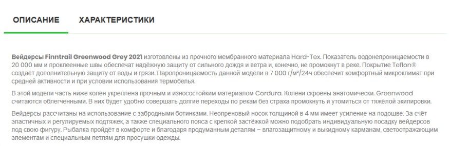 В отличие от категорийного текста, описание товара точно будет читать потенциальный покупатель, но именно они обычно креативные в плохом смысле слова. Понимаю, что конкуренция крайне высока, все изголяются, как могут. Но старайтесь даже при написании такого типа текста сохранять его адекватность. Как и в случае с контентом на главную, делаем акцент на выгоду для клиента, а не на голые преимущества продукта.
