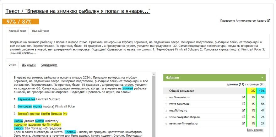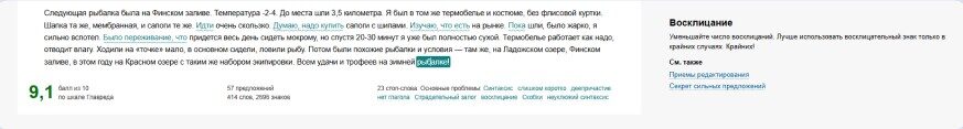 Результат проверки в сервисе Главред