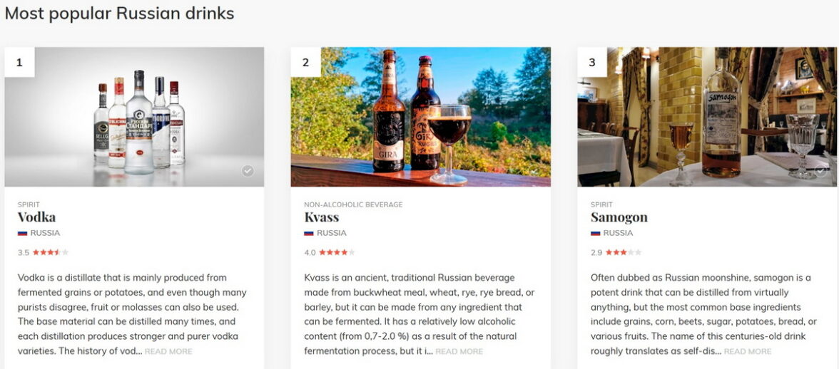 В отличие от «закусок» в исконно русских напитках TasteAtlas разобрался хорошо. Водка, квас, самогон.