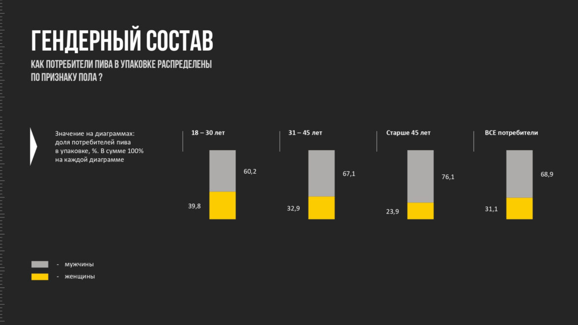 Мужчины пьют пиво чаще. В категории «старше 45 лет» разница еще более ощутимая