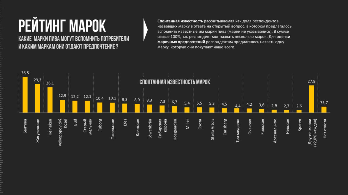 Самые популярные марки — «Балтика», «Жигулевское» и Heineken