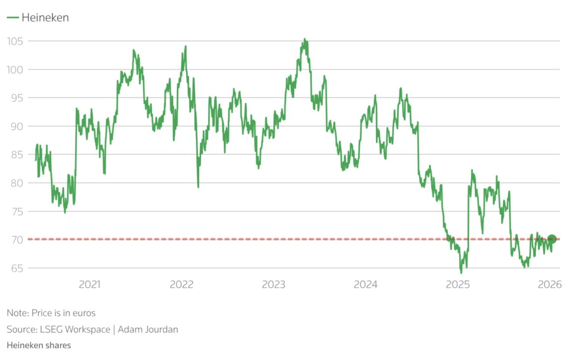 За время его руководства курс акций компании снизился примерно на 15%. По итогам III квартала 2025 года (отчетность за год еще не публиковалась) выручка Heineken сократилась на 4% и составила €8,71 млрд против €9,07 млрд за аналогичный период предыдущего года. Выручка без учета единовременных факторов и амортизации (BEIA) уменьшилась на 3%, с 7,56 млрд евро до 7,33 млрд евро, органическое снижение составило 0,3%. Продажи пива за квартал в натуральном выражении сократились на 4,3%, в том числе продажи продукции под брендом Heineken — на 0,6%. Особенно сильное падение продаж было зафиксировано в американском (-7,4%) и в европейском регионе (-4,7%). В квартальном отчете Heineken прогнозировала «сдержанное снижение» продаж по итогам года.