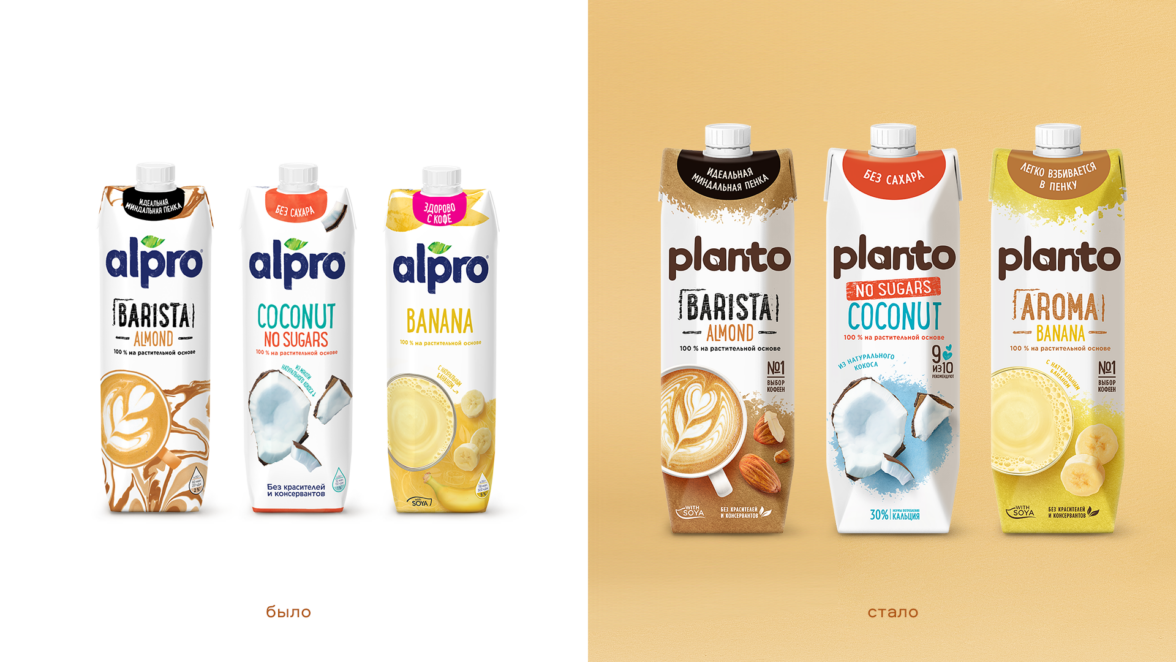 Наша команда разработала дизайн упаковок растительного напитка Planto (ранее Alpro) от компании Health & Nutrition (ранее Danone).