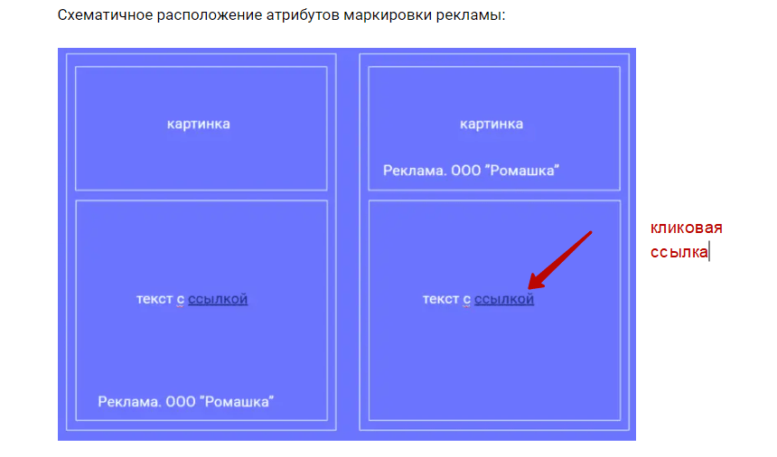 Два варианта размещения маркировки рекламы на РИМ (Картинка + Текст). erid зашит в ссылку