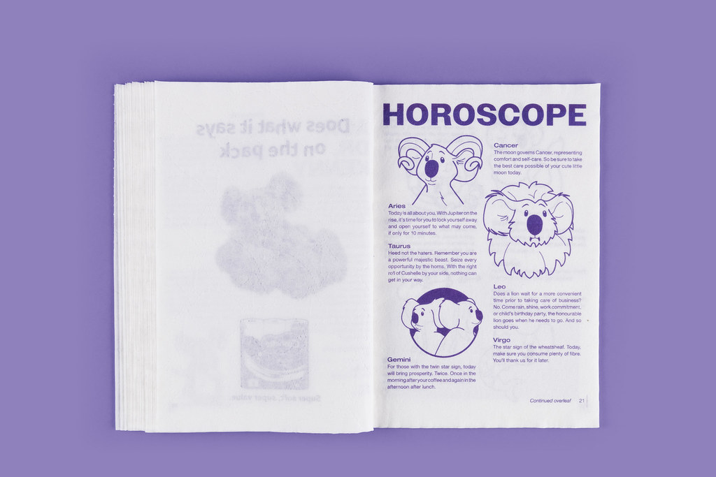 Каждая страница журнала Porcelain перфорирована. Теперь британцы могут выбрать, какую из 30 страниц им использовать по назначению — слово редактора, кроссворды, гороскопы и даже рекламу Cushelle. Все материалы напечатаны безопасными для кожи чернилами.