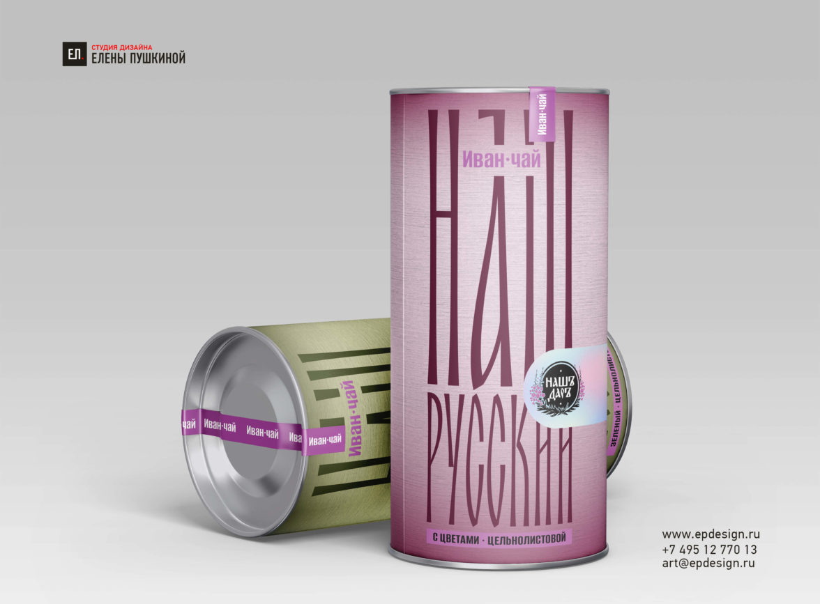 В рамках конкурса мы разрабатывали чайную упаковку для компании «Нашъ Даръ», которая выпускает чайные напитки на основе иван-чая (кипрея). Идея бренда — популяризация русского чая и русских традиций.