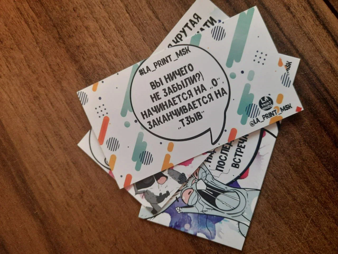 Хороший вариант для тех, кто занимается продажей товаров с доставкой. Покупатель получает посылку, открывает ее и видит красочный вкладыш, где компания просит поделиться своим мнением. Если к буклету приложить небольшой подарок или сувенир, вероятность успеха повышается.