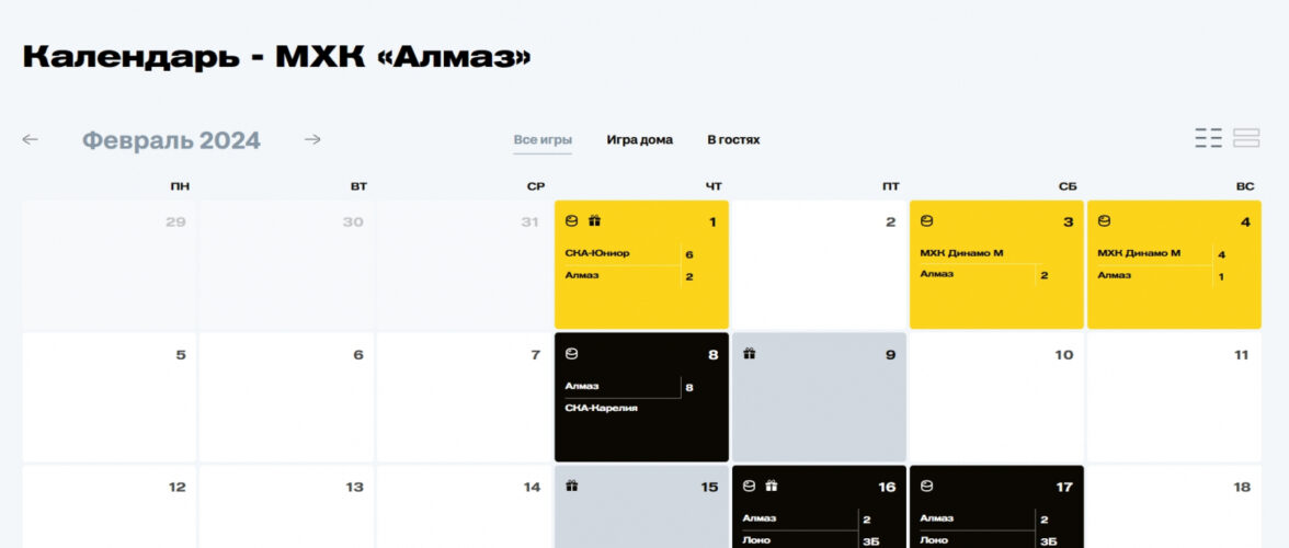 Календарь на сайте ХК «Алмаз»