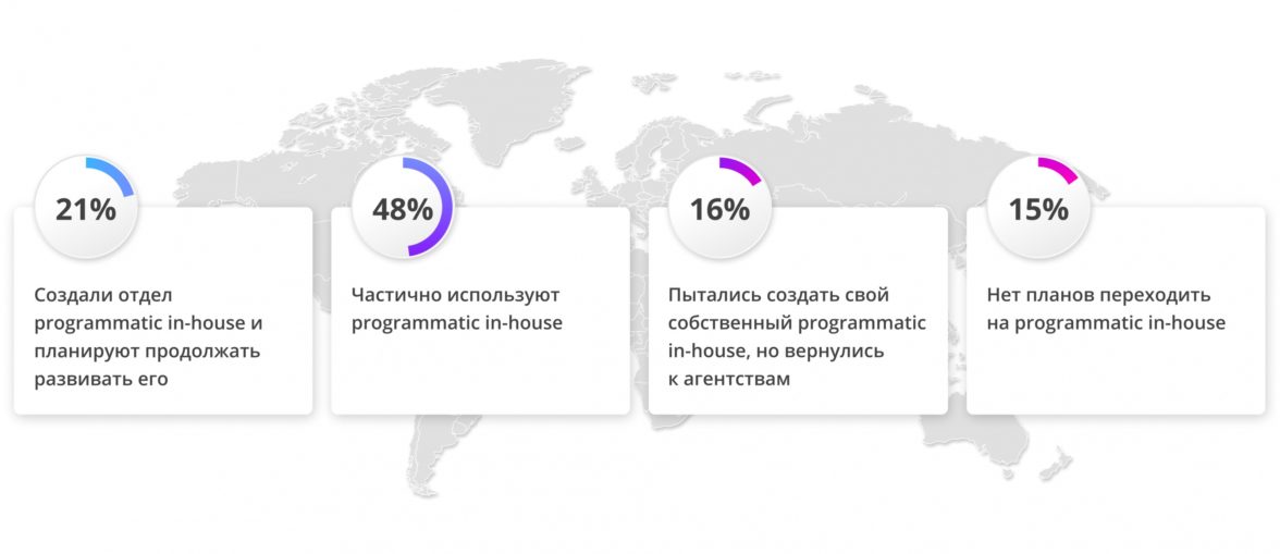 По данным опроса, каждая 5 организация во всем мире уже создала свой отдел (по данным отчета IAB Programmatic с Accenture Interactive).