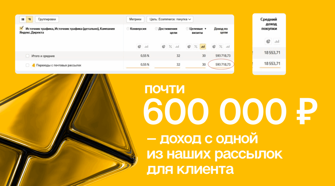 Всё это через email даёт прогнозируемую выручку. А результаты легко измерить: от ROI до дохода на одного покупателя.