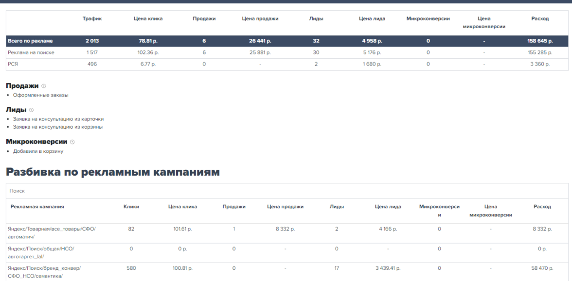 • Микроконверсии — промежуточный шаг на пути к обращениям и продажам. Микроконверсии показывают заинтересованность пользователей сайта в коммерческом предложении (сколько товаров / услуг добавлено в корзину), а также демонстрируют реакцию на удобство пользования сайтом.