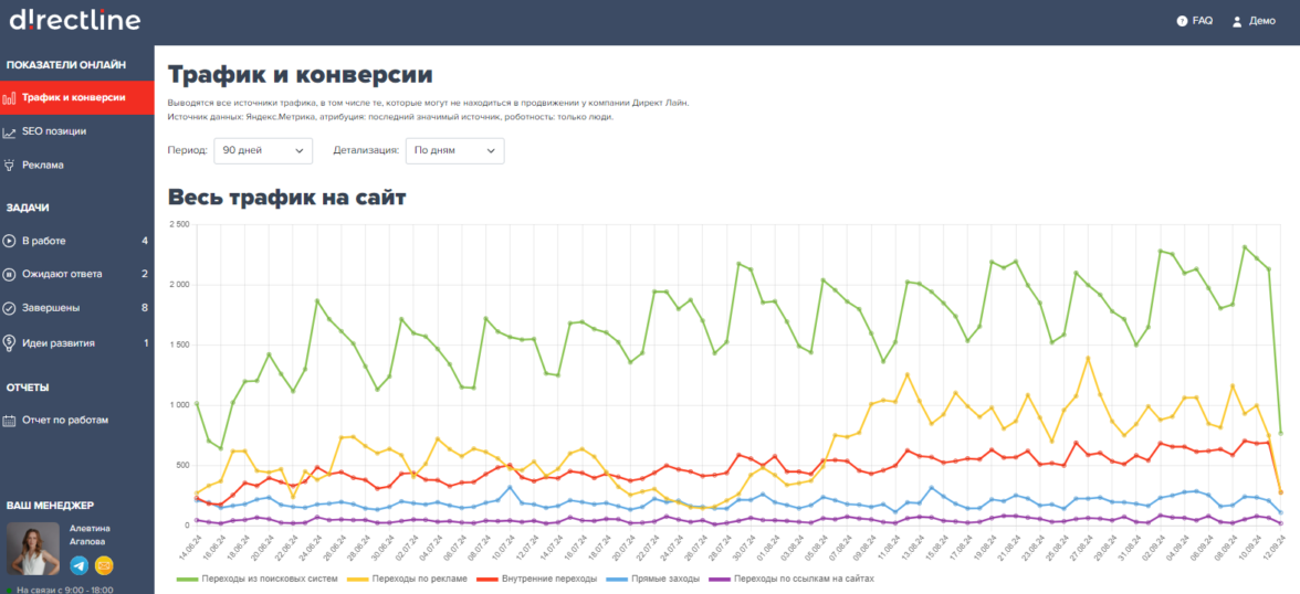 На графике отображаются все источники трафика, в том числе те, которые могут быть не взяты в работу агентства Директ Лайн: