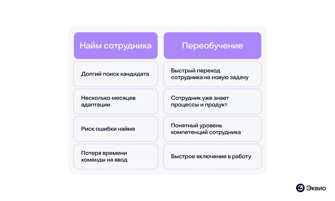 Причина проста: обучение действующих сотрудников часто оказывается быстрее и дешевле, чем полный цикл найма и адаптации нового человека.