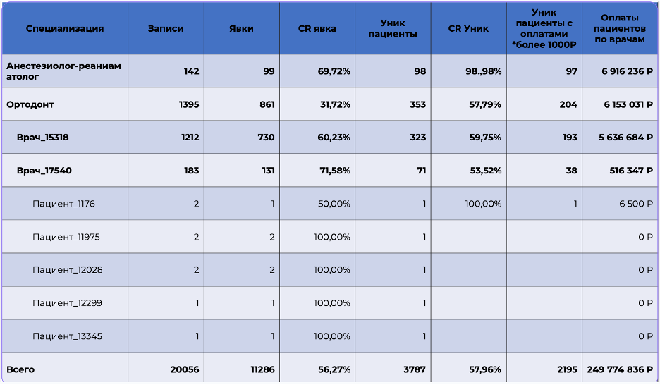 Прозрачность бюджета за счет связки между каналами привлечения, рекламными бюджетами и данными из CRM и МИС.
