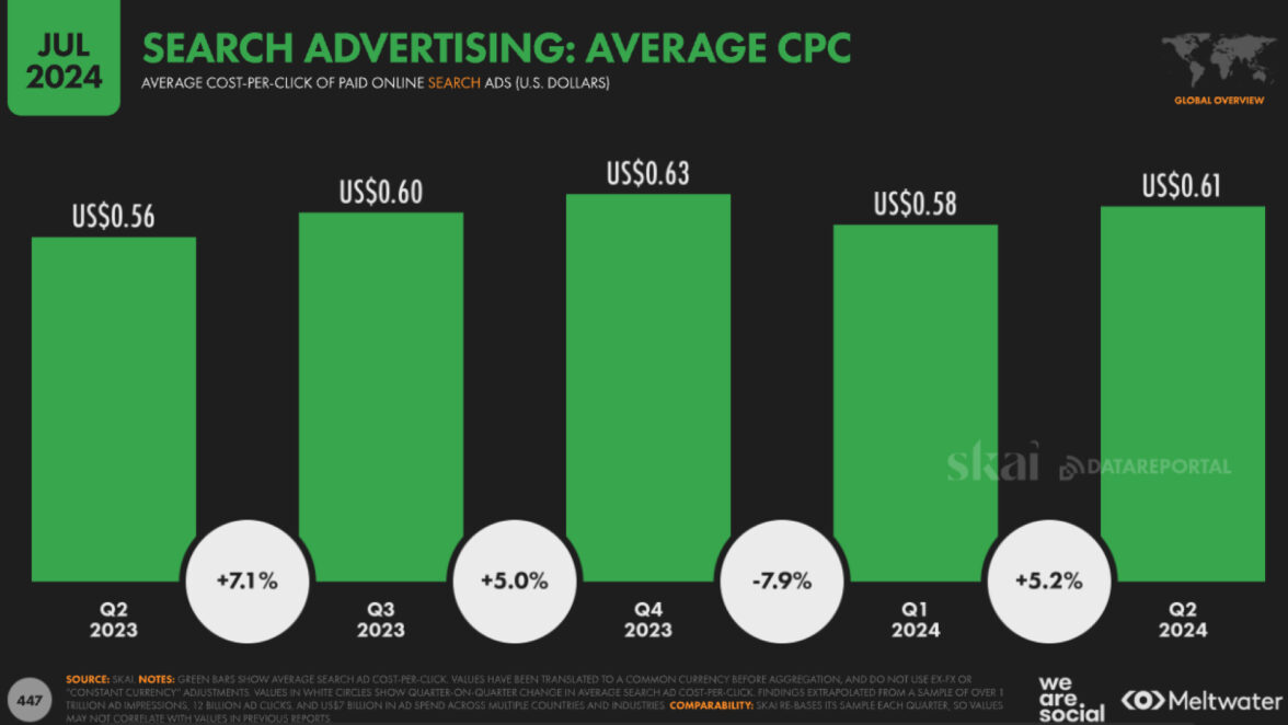 Согласно последним исследованиям, в 2024 году стоимость кликов (CPC) возросла на 5,2%. Это делает SEM-кампании более затратными и менее предсказуемыми.